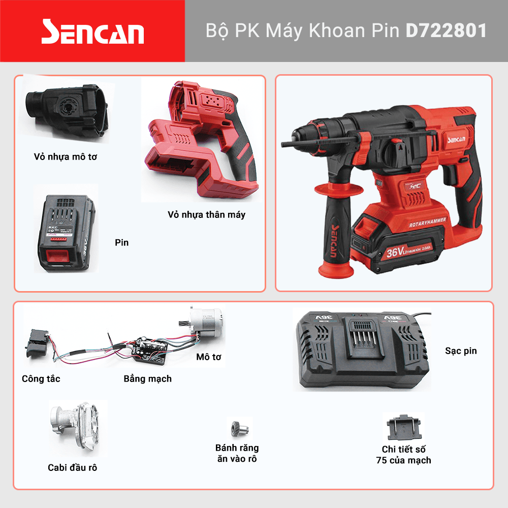 Bộ PK máy khoan búa dùng pin D722801