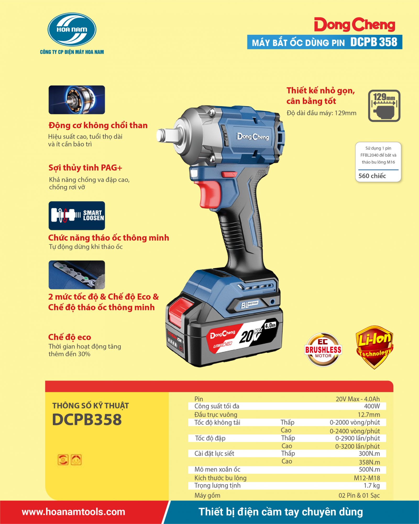 1. Đặc điểm nổi bật của máy bắt ốc dùng pin DCPB 358