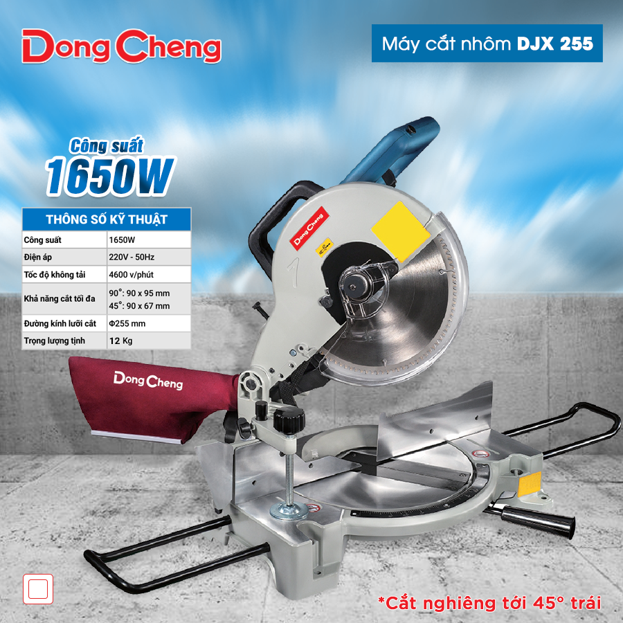 Trong ngành cơ khí, xây dựng và sản xuất nội thất, một chiếc máy cắt nhôm với công suất mạnh mẽ, tốc độ cắt cao và đường cắt sắc nét là yếu tố quan trọng giúp tối ưu công việc. Máy cắt nhôm DJX255 với công suất 1650W, tốc độ không tải 4600 vòng/phút, cùng lưỡi cắt Φ255mm mang đến khả năng cắt nhanh, chính xác, giúp xử lý dễ dàng các thanh nhôm, nhựa và vật liệu phi kim loại khác.