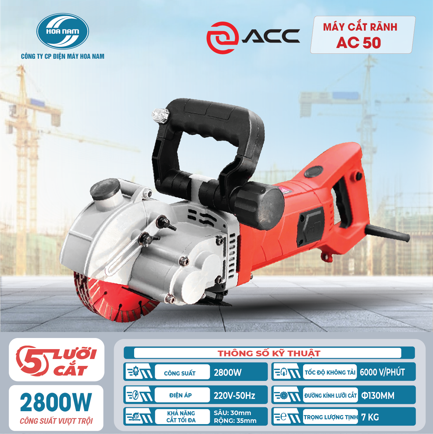 Máy cắt rãnh AC50 là sự lựa chọn lý tưởng cho thợ xây dựng, thợ điện nước, kỹ sư công trình nhờ hiệu suất mạnh mẽ, độ chính xác cao và thiết kế bền bỉ. Với công suất 2800W, 5 lưỡi cắt song song, khả năng cắt sâu 30mm và rộng 35mm, sản phẩm giúp tối ưu hóa quá trình thi công, tiết kiệm thời gian, nâng cao năng suất làm việc. Nếu bạn đang tìm kiếm một chiếc máy cắt rãnh mạnh mẽ, bền bỉ và dễ sử dụng, AC50 chính là sự lựa chọn hoàn hảo!