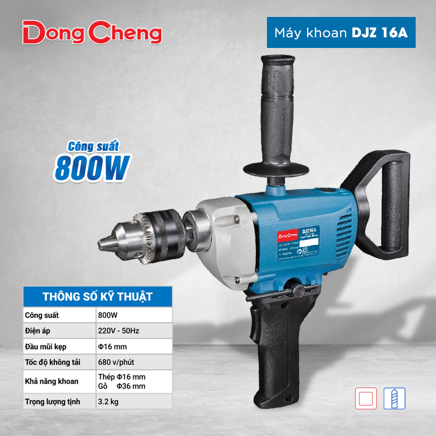 - Công suất mạnh mẽ 800W: Máy khoan DJZ16A sở hữu công suất 800W, cung cấp sức mạnh vượt trội để xử lý các công việc khoan đòi hỏi công suất lớn. Điều này giúp máy hoạt động ổn định, đặc biệt khi khoan qua các vật liệu cứng như thép, bê tông, gỗ, mang lại hiệu quả cao trong mọi tình huống.