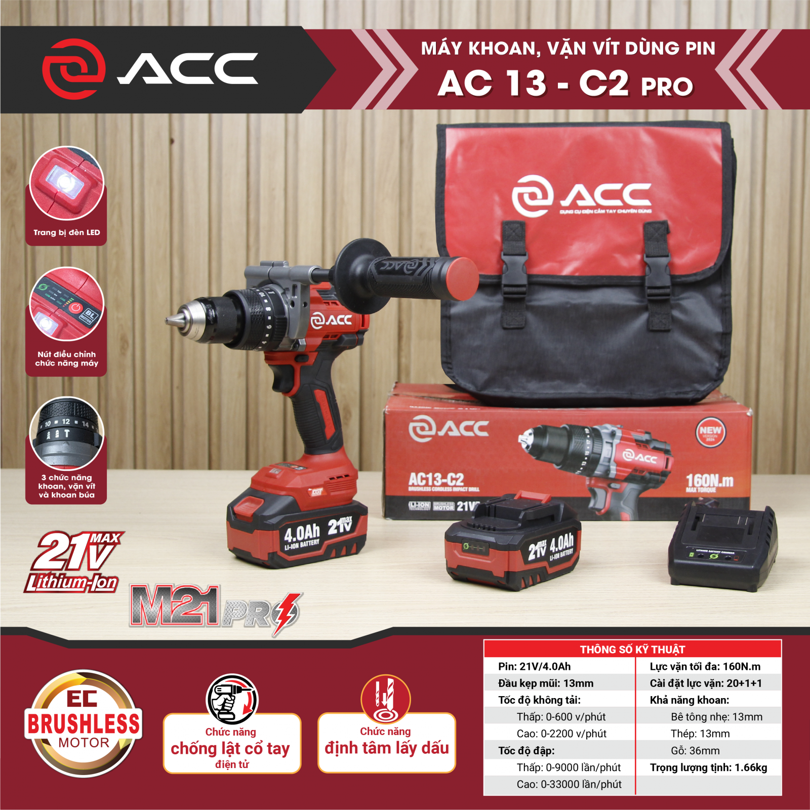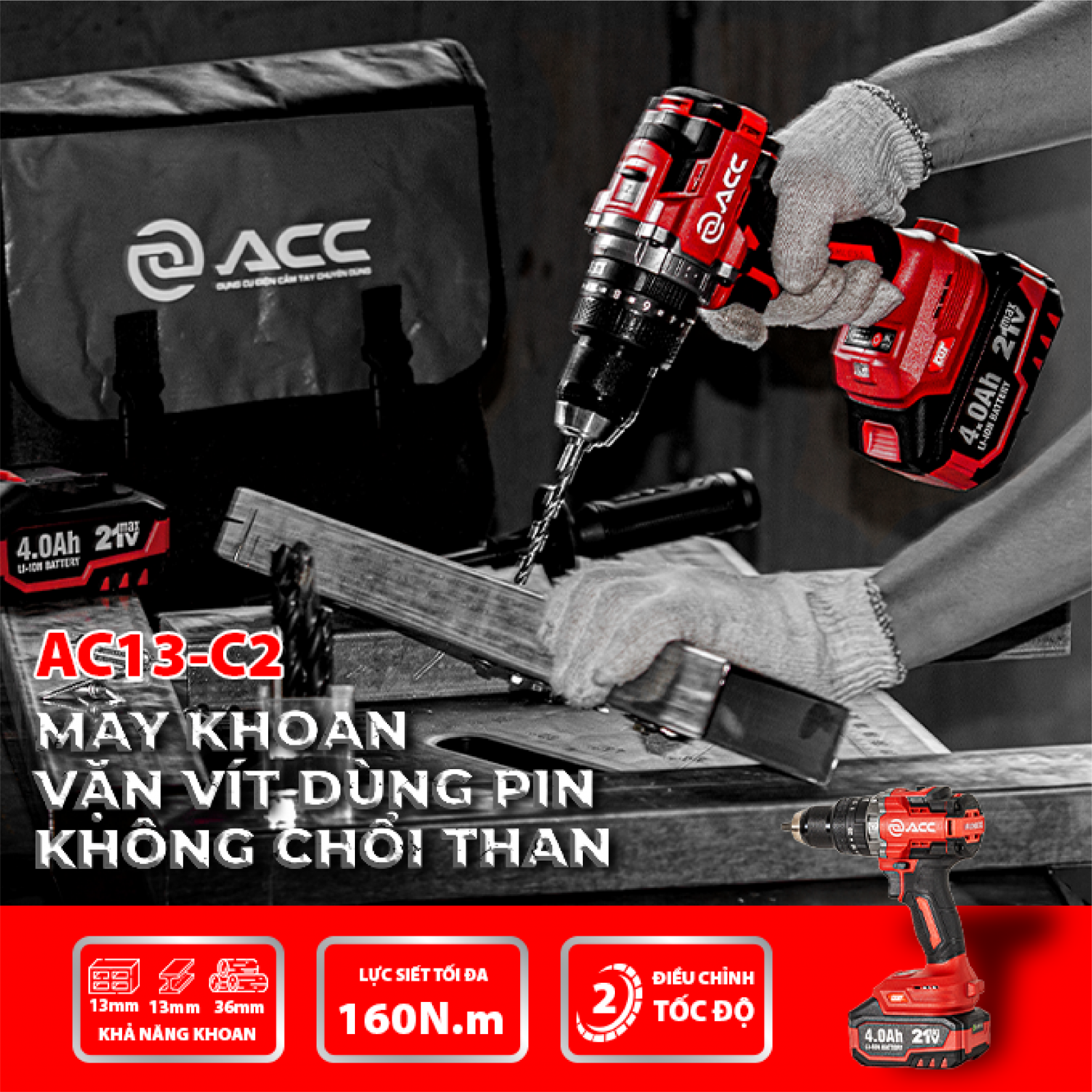 Với công suất mạnh mẽ, thiết kế bền bỉ và hiệu suất vượt trội, Máy khoan, vặn vít dùng pin AC 13-C2 PRO là công cụ lý tưởng cho thợ cơ khí, lắp ráp và sửa chữa chuyên nghiệp. Đầu tư ngay hôm nay để nâng cao hiệu suất làm việc và tiết kiệm tối đa thời gian lao động!