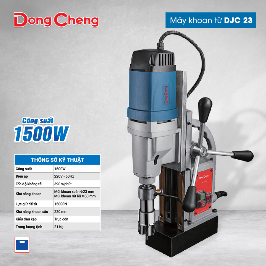 - Công suất mạnh mẽ 1500W: Máy khoan từ DJC23 được trang bị công suất 1500W, mang lại hiệu suất làm việc mạnh mẽ và ổn định. Công suất cao này cho phép máy khoan sâu và nhanh chóng, giúp bạn tiết kiệm thời gian trong quá trình khoan và đục các vật liệu cứng.