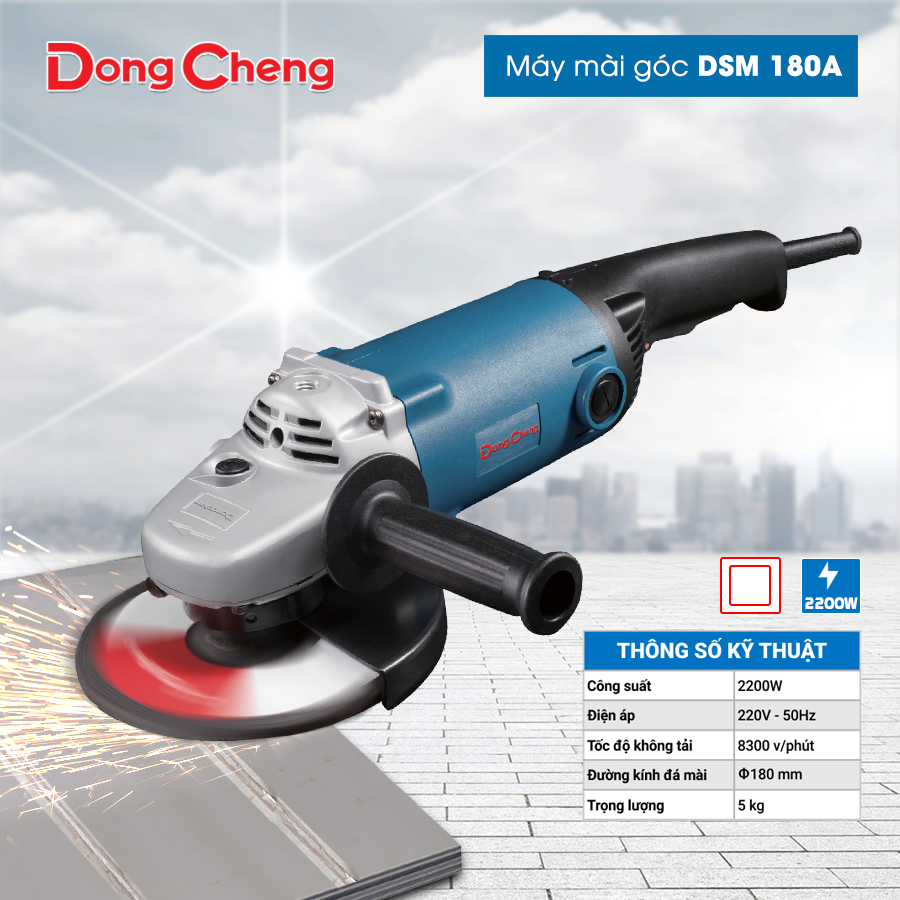 Máy mài góc DSM180A là dòng máy mài công suất lớn, chuyên dụng cho các công việc mài, cắt vật liệu cứng như kim loại, bê tông, gạch đá. Với công suất lên đến 2200W cùng tốc độ không tải 8300 vòng/phút, sản phẩm này mang đến hiệu suất làm việc mạnh mẽ, đáp ứng nhu cầu sử dụng trong công nghiệp và xây dựng.