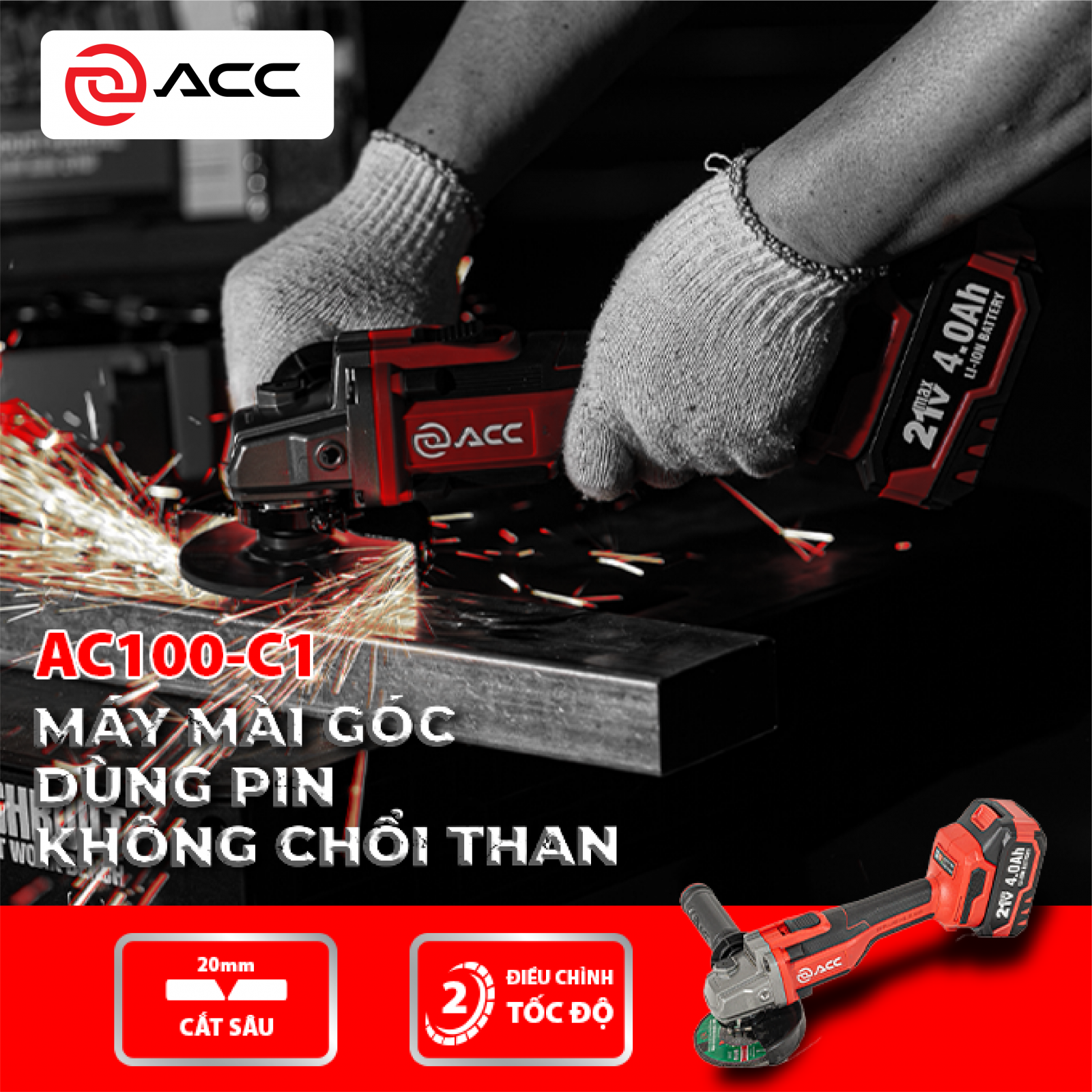 Máy mài góc dùng pin AC100-C1 PRO của thương hiệu ACC là sản phẩm mạnh mẽ và tiện dụng dành cho các công việc mài mòn, cắt gọt và làm nhẵn các bề mặt. Với thiết kế thông minh và các tính năng vượt trội, máy mài góc dùng pin AC100-C1 PRO đáp ứng nhu cầu làm việc tại công trình, xưởng sản xuất hoặc tại gia đình.