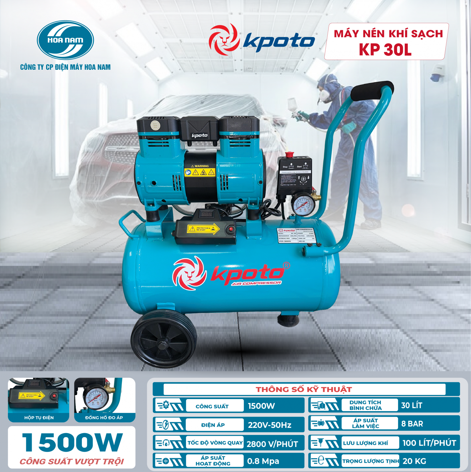 Máy nén khí sạch KP30L sở hữu động cơ 1500W mạnh mẽ, khí nén sạch 100% cùng thiết kế bền bỉ, phù hợp với nhiều lĩnh vực. Nếu bạn đang tìm kiếm một sản phẩm chất lượng, hiệu suất cao và thân thiện với môi trường, KP30L là lựa chọn đáng cân nhắc!