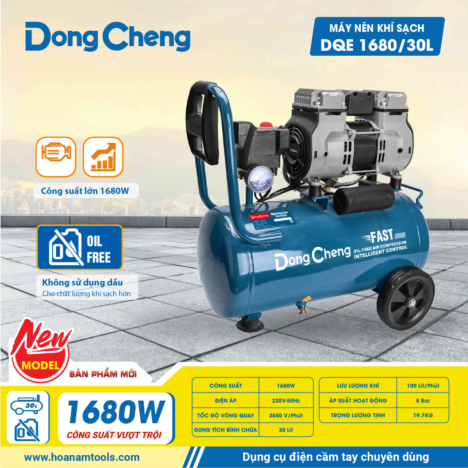 Máy nén khí là thiết bị không thể thiếu trong nhiều lĩnh vực, từ sửa chữa, công nghiệp, cho đến y tế và thực phẩm. Máy nén khí sạch DQE1680/30L với công suất vô cùng mạnh mẽ, dung tích bình chứa lớn lên đến 30L với thiết kế không dùng dầu bôi trơn giúp máy có lượng khí sạch hơn, đáp ứng tiêu chuẩn cao trong quá trình làm việc.