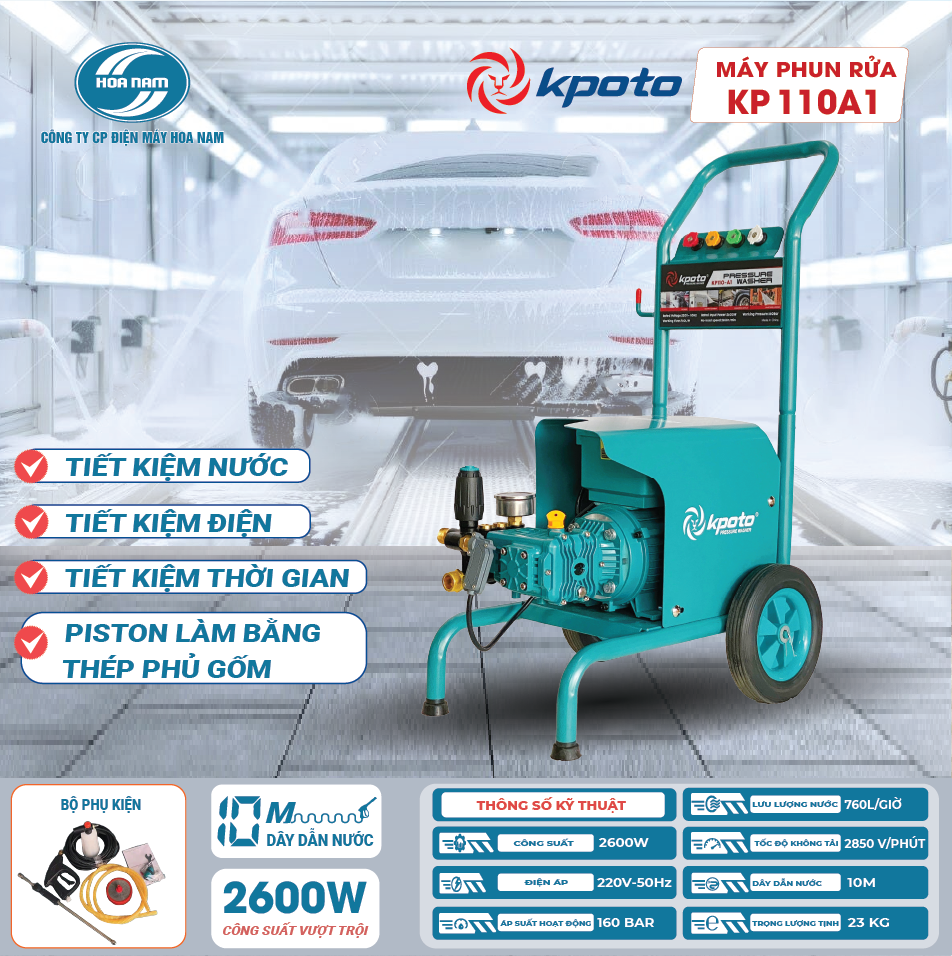 Máy phun rửa KP110-A1 với công suất 2600W, áp suất 160 Bar, lưu lượng nước 760 lít/giờ là lựa chọn lý tưởng cho nhu cầu xịt rửa chuyên nghiệp. Nếu bạn đang tìm kiếm một thiết bị mạnh mẽ, bền bỉ và hiệu quả, KP110-A1 là sự lựa chọn đáng cân nhắc!
