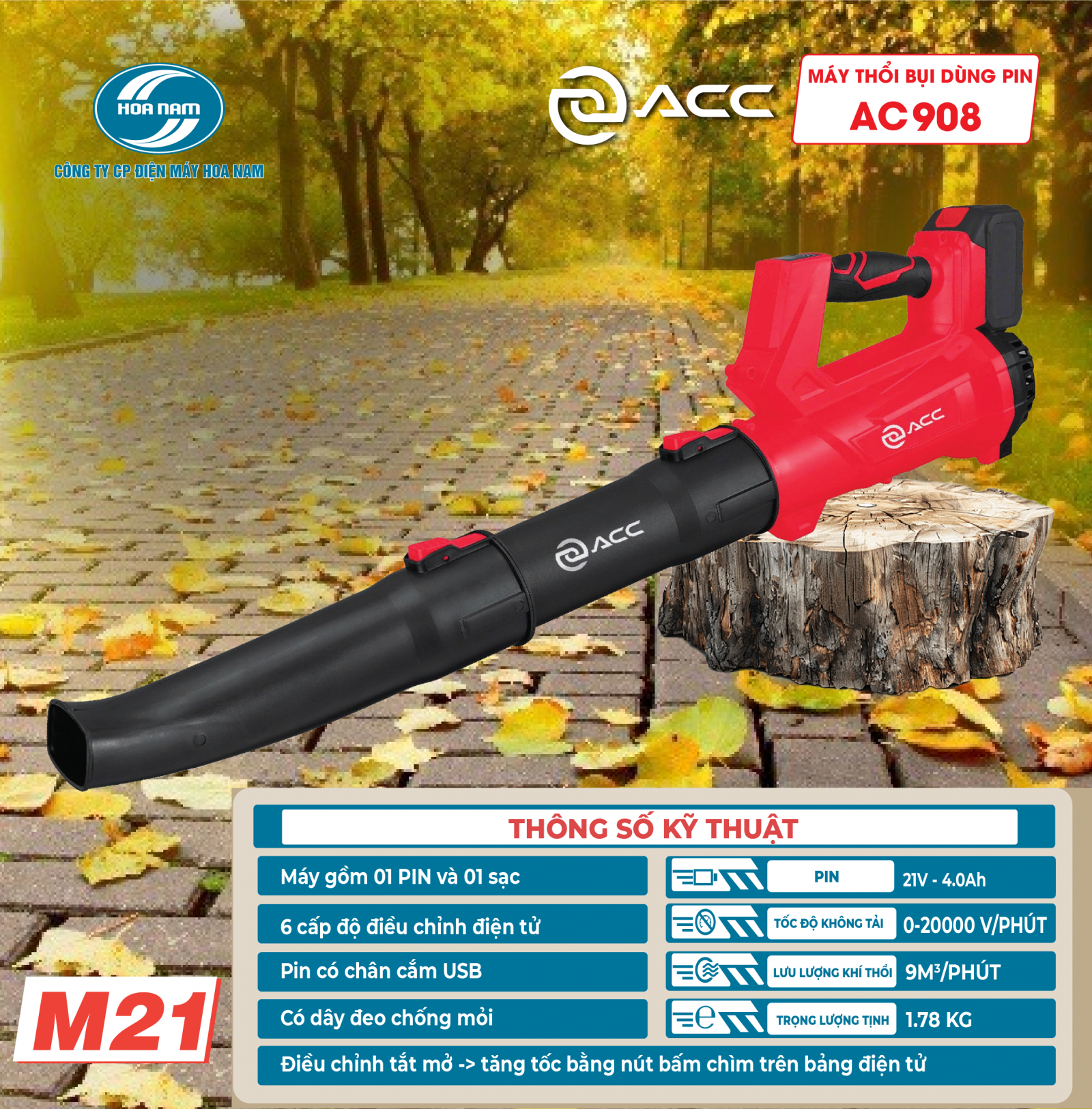 Sản phẩm không chỉ sở hữu hiệu suất cao và độ bền vượt trội mà còn mang lại sự tiện ích tối đa với thiết kế hiện đại và các tính năng thông minh. Nếu bạn đang tìm kiếm một giải pháp vệ sinh tối ưu, đa năng, và dễ sử dụng, máy thổi bụi dùng pin AC908 chính là sự lựa chọn hoàn hảo.