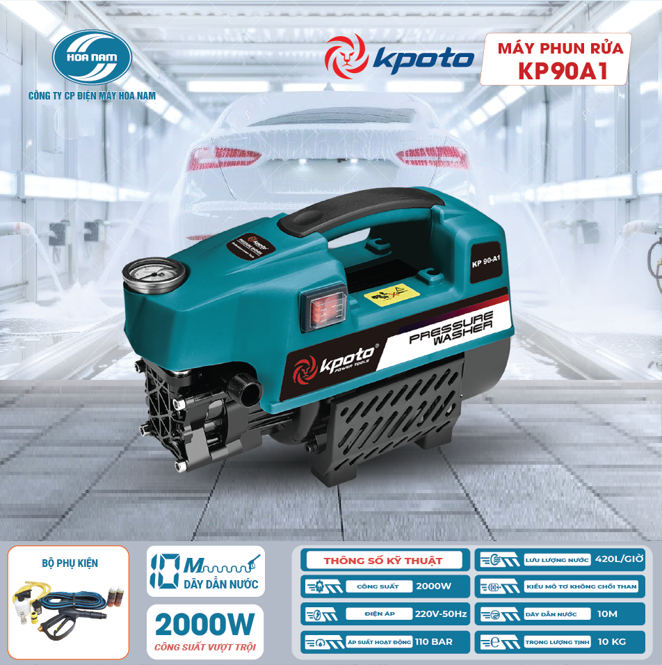 Máy phun rửa KP90-A1 là thiết bị lý tưởng dành cho nhu cầu vệ sinh tại gia đình, tiệm rửa xe nhỏ và công trình dân dụng. Sở hữu công suất 2000W, áp suất làm việc 110 Bar và mô tơ không chổi than bền bỉ, sản phẩm mang đến hiệu suất làm sạch mạnh mẽ, tiết kiệm điện năng, nước và thời gian.