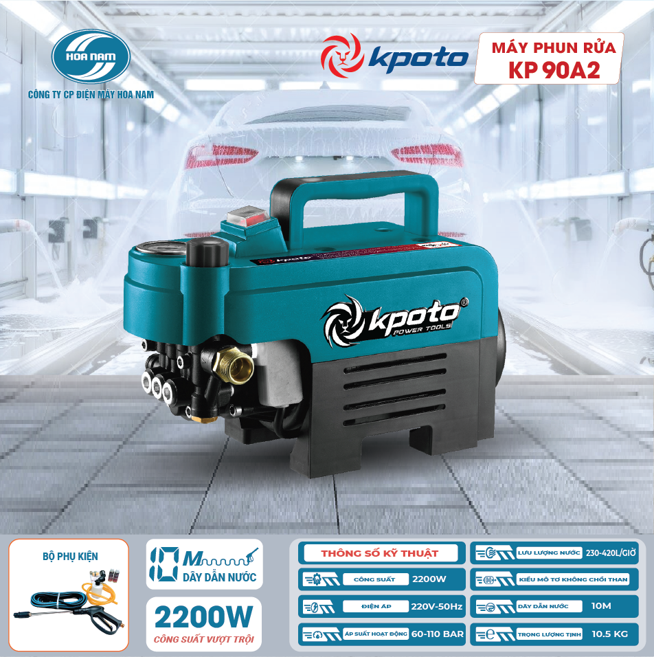 Máy phun rửa KP90-A2 là lựa chọn lý tưởng dành cho nhu cầu vệ sinh đa dạng từ gia đình đến tiệm rửa xe nhỏ và khu công nghiệp nhẹ. Với công suất 2200W, áp suất làm việc linh hoạt từ 60 - 110 Bar và mô tơ không chổi than, sản phẩm đảm bảo hiệu quả làm sạch vượt trội, giúp tiết kiệm thời gian, công sức và chi phí vận hành.