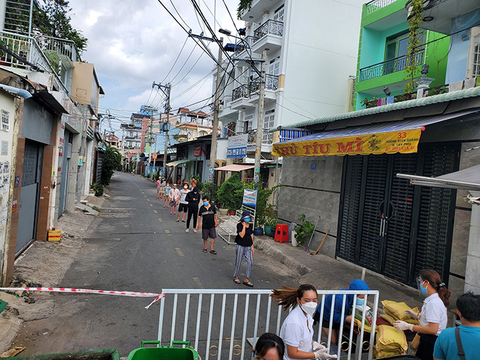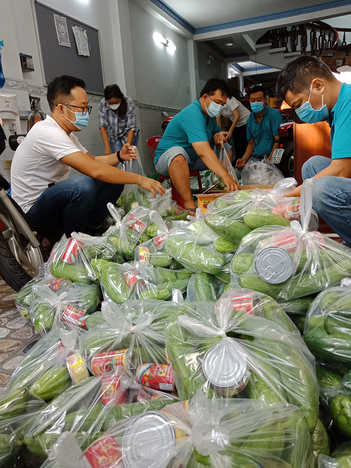 Ngày 12/7/2021, Công ty đã trao hơn 100 xuất quà (gồm lương thực, thực phẩm, rau củ) cho các hộ dân, nhà trọ bị phong tỏa - cách ly tại khu vực phường Hiệp Tân, quận Tân Phú.